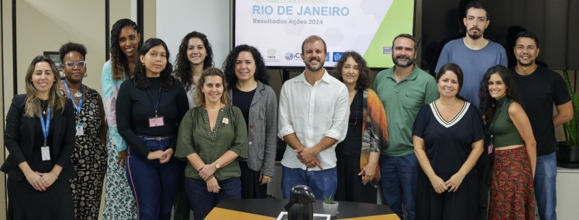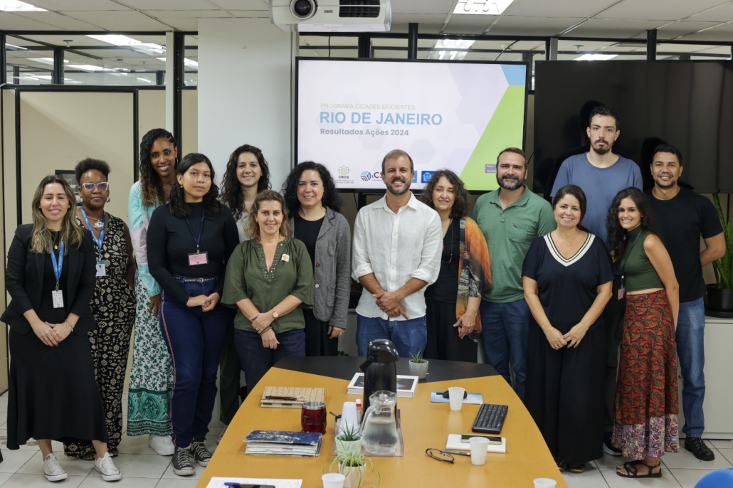 Durante a exibição dos resultados, Maria Andrea Triana, coordenadora técnica do Programa Cidades Eficientes, enfatizou que esse foi o segundo ano de trabalho com a Prefeitura do Rio de Janeiro e, por isso, foi possível consolidar muitas ações e avançar ainda mais. Ela também destacou o apoio e fundamental engajamento do Escritório de Planejamento e da Secretaria Municipal de Educação. A reunião de apresentação dos resultados foi realizada no dia 18 de dezembro, na sede do Escritório de Planejamento e contou também com as presenças de Clarice Degani, diretora executiva do CBCS, e Giselle Bahiense Lyra, pesquisadora do Programa Cidades Eficientes. Do Escritório de Planejamento estiveram presentes, além de Daniel e Pedro, Aline Xavier, Coordenadora de Estratégias de Planejamento, Bruna Macciantelli, Gerente de Novos Modelos em Sustentabilidade e Resiliência, e os estagiários Ana Beatriz Pires, Felipe Furtado, Karen de Oliveira e Luis Felipe de Almeida. Da Secretaria de Educação, estavam presentes as professoras Luciana Costa e Leila Santos.
